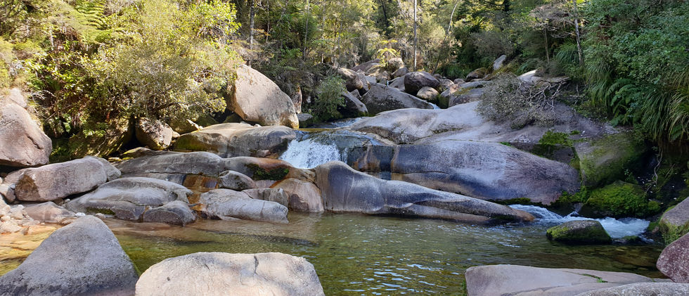 There are two ways to get to Anchorage from Torrent bay, you can take the low tide track across a rather large inlet which will take about 1hr off your walk. Or you can take the high tide track that takes you past the short walk into Cleopatra's pools but is apparently 1- 1.5 hours longer. After checking the tide times the night before we had made the decision to take the high tide track up past Cleopatra's pools and do a wee side walk in to the pools for a look and a swim. Our original thought had been to get up early and take the low tide track across the inlet to Anchorage, set up camp them go off for a walk to the pools and back. After seeing how large the inlet was and also the very steep climb we would have had to make out of Anchorage to back track to the pools, I was very glad we made the decision to take the high tide track instead and I would recommend this to anyone walking with kids.